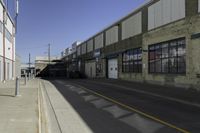 A view of a suburban area in Toronto, Canada. The clear sky illuminates the residential buildings and houses, while street lights brighten up the asphalt roads. The urban design creates a low-rise neighborhood with a mix of residential and industrial properties.