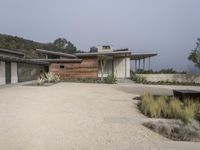 A gloomy dawn in a suburban village in California. Modern residential houses with concrete roofs set against a grey sky. Open spaces, vineyards, and gravel driveways add to the rural charm of this picturesque area.