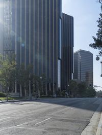 A bright sunny day in Los Angeles, California. The sun casts a gentle glow across the city, illuminating the modern architecture and high-rise buildings. The clear sky and grey clouds create a picturesque backdrop for the urban landscape. The busy business district comes to life on this vibrant day, with traffic flowing along the asphalt roads. Trees and vegetation add a touch of greenery to the urban design. This stock photo captures the energy and vitality of the city, making it a perfect choice for marketing materials related to property, business, and urban life in California, USA.