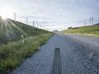 This is an image of a sunny day in California, USA. The photo captures a straight road that extends into the distance, lined by lush green grass and fields. The road surface is made of smooth asphalt, perfect for transportation and agriculture. Above, the blue sky is dotted with fluffy clouds and contrails left behind by airplanes. The elevated position allows for a panoramic view of the rural landscape and the rolling hills in the background. This picture showcases the beauty of California's natural scenery and the infrastructure that connects its rural areas.