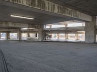 An empty parking garage in a modern urban city. The clear sky above illuminates the concrete structure. The absence of cars on the sidewalk gives a sense of tranquility. A sunny day in the heart of the city.