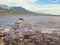 A sunny day in California with an expansive open space of salt surface. The clear sky and fluffy clouds reflect on the serene salt lake. An ideal location for relaxation and exploration in the USA.