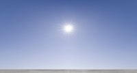 A sunny day in an open space, with clear skies and the sun visible. The concrete surface adds a modern touch to the natural landscape. This serene scene captures the beauty of nature in both the USA and Europe.