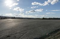A sunny day on a rural road, surrounded by open fields and trees. The road surface is smooth and the horizon is visible, creating a picturesque landscape. The sunlight illuminates the surface of the road and the soil.