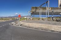 A sunny day in Tabernas, Spain. The clear sky provides a backdrop for a stop sign in front of a concrete building. Mountains in the background highlight the stunning landscape of this European region.