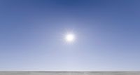 A sunny day in the USA, with a clear sky and the sun visible. The landscape features open spaces and concrete surfaces. Nature and sunlight create a beautiful HDR light effect.