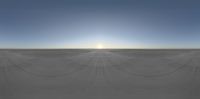an empty skating area with the sun in the sky behind it and multiple strings in the air