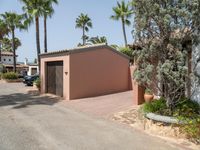 A view of a sunny residential area in Mallorca, Spain. The clear sky accentuates the asphalt road running through the neighborhood. Located in the Balearic Islands, this is a quintessential day in Europe.