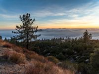 Sunrise in a Mountainous Landscape with Pine Trees and Rolling Clouds