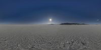 A serene landscape in Salt Lake City, Utah, at the break of day. The open desert expanse reflects the clear sky and the first light of dawn. Sun visible in the clear, sunny skies over the salt surface.