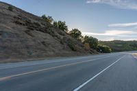 This stunning stock photo captures the beauty of a sunrise on a rural road. The asphalt road winds through the picturesque landscape, with mountains in the distance and a solitary tree adding a touch of charm. The road surface is smooth and the vegetation lush, creating a peaceful and serene atmosphere. Fluffy clouds decorate the sky as the sun visible, casting a warm and golden glow on the scene. The image perfectly represents the tranquil beauty of a sunny morning in the countryside.