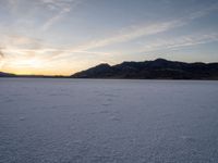 A breathtaking view of the Bonneville Speedway in Utah. The open desert landscape with sandy and salt surfaces creates a stunning contrast against the clear skies. The sun visible at dawn adds a touch of warmth to this majestic scene.
