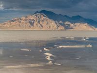 A serene landscape of the Salt Lake in Utah, with mountains in the backdrop. Open space with salt formations under a clear sunny sky, reflecting the natural beauty of Salt Lake City.