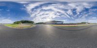 A unique perspective of a winding road in Suzhou, China. The fisheye lens captures the modern architecture of a building from the inside out, illuminated by the sunlight. A perfect day to explore the urban landscape.