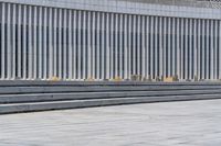 A modern cityscape in Suzhou with sleek and minimalist architecture. Cobblestone streets and open spaces create an urban design that blends seamlessly with the clear sky. The concrete walls add a touch of modernity to the city's vibrant and bustling atmosphere.