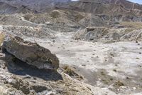 a large rock in the desert with a view of the mountains behind it taken from a viewpoint