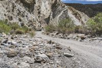 This stock photo captures the thrill of an off-road adventure in the stunning surroundings of Tabernas, Spain. The image showcases a sandy desert terrain with mountains in the background and a patch of grass in the foreground. The clear blue sky with fluffy clouds adds to the picturesque landscape. The rocky outcrops and bedrock formations enhance the natural beauty of the area. A dirt track road can be seen winding through the valley, inviting nature lovers to explore the rugged terrain. The photo showcases the diverse vegetation, including trees and other grassy patches, which flourish against the gravel surface. Embark on an exciting journey into this European paradise and marvel at the enchanting beauty of Tabernas.