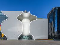 A modern architectural marvel in the heart of Taichung, Taiwan. This white masterpiece stands tall amidst the bustling city life. Clear skies frame the impressive structure, while nearby buildings add to the urban charm.