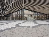 This photo showcases a modern architectural structure in Asia, specifically in Kaohsuing, Taiwan. The futuristic design of the building is highlighted by its large windows and glass facade. The empty concrete floor of squares adds to the aesthetics of the urban design. The coastal location offers glimpses of the ocean and harbor in the distance. This image represents the fusion of modern architecture and coastal city life in Taiwan. It is a representation of the vibrant and dynamic cityscape that can be found in Kaohsuing, Republic of China.
