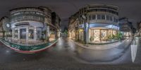 Aerial view of Taipei City at night, with rain-soaked streets illuminated by neon lights. The high position provides a top-down perspective of the city's urban design. A distorted image captures the essence of city life.