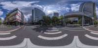 A futuristic cityscape in Taipei City, Taiwan. The modern architecture of high-rise office buildings and residential areas contrast with the curved streets and vehicles. The clear sky adds to the vibrant urban design.