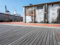 This image showcases an old factory building in Kaohsiung, Taiwan, located in the urban art district. The clear sky provides a perfect backdrop to highlight the details of the brick wall, which is a prominent feature of urban design in Taipei, the capital city of Taiwan. The empty street and sidewalk boards add to the urban aesthetic of the photograph. The picture captures the essence of the Republic of China, with its unique blend of modernity and historical charm. This image represents a typical day in Taiwan's urban landscape.