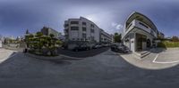 the photo shows different buildings and street scenes in this picture of the street and sidewalk