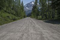 A scenic drive through the highlands of Telluride, Colorado. The road winds through dense forests and offers breathtaking views of majestic mountains. Serene lake in the natural wilderness enhances the landscape's beauty.