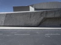 A modern architecture road in Tenerife, Spain. The futuristic design and concrete walls create a striking urban landscape. Clear skies and a smooth asphalt road surface enhance the architectural beauty of this European city.