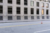 This image showcases modern architecture in the city of Houston, Texas, USA. The photo captures a building with a sleek facade and large windows, surrounded by other buildings in a business district. The street is lined with trees and vegetation, giving a touch of green to the urban landscape. In the foreground, two orange cones signify ongoing construction or maintenance work. The image represents a typical day in Houston, with its bustling city streets and contemporary architecture.