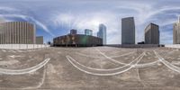Aerial view of an urban landscape in Houston, Texas. The composite material of the high-rise buildings and parking decks create a modern cityscape. The empty open spaces and straight roads give a sense of spaciousness in the metropolitan area.