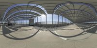An architectural marvel in Toronto, Canada. The large circular structure features curved sections of metal rods along its sides, creating a symmetrical pattern. The clear sky and urban backdrop add to its appeal.