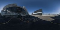 A modern architectural marvel in the heart of Toronto, Canada. The building's design and facade create a symmetrical and striking silhouette against a clear sky. The urban landscape and open spaces surrounding the building add to its appeal.