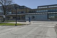 An image showcasing the modern architecture in Toronto's business district. The city skyline is visible in the background against a clear sky. The buildings are made of brick and stone, creating a unique blend of brownstone architecture. The road surface is covered in asphalt and lined with trees. This neighborhood is a thriving residential and commercial area with offices and public spaces. The image captures the urban design of the area, highlighting the combination of contemporary style and natural vegetation.