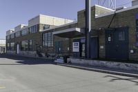 A day in Toronto, Canada. Clear sky illuminates the low-rise residential area with its architecture. Streets lined with houses, buildings and warehouses create a suburban landscape. Urban design blends with the clear sky.