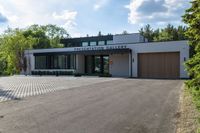 A modern office building in Toronto, Canada. This architectural masterpiece stands tall in the bustling business district. Surrounded by green vegetation, it exudes a sense of sophistication and professionalism. A cloudless day provides the perfect backdrop to this impressive structure.