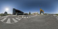 A viewfinder-style image of a street in Toronto's financial district. Modern office buildings line the road, with clear skies above. The urban landscape showcases the city's architectural and business prowess.