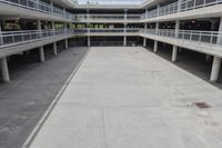 This image features a modern urban office building located in Toronto, Ontario, Canada. The building has a sleek design with a mix of concrete, metal, and glass facade. The straight road in front of the building leads to a spacious parking deck and garage. The surrounding urban design includes a beautiful park and walkway. The elevated view showcases the building's high floors and clear sky backdrop. This mixed-use building serves as a headquarters and offers plenty of office space. The surface of the parking deck is made of high-quality flooring. A stadium can be seen in the distance, adding to the vibrant cityscape of Toronto.