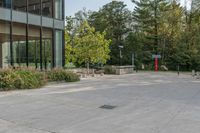 A view of a suburban neighborhood in Toronto, Canada. The residential area is surrounded by trees and open spaces. The road surface and asphalt parking lots create a urban design with hard shadows. A perfect day to explore the city.