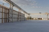 This is an image of a cityscape in Toronto, Canada at dawn. The low concrete buildings and warehouses dominate the urban landscape. The clear sky and rising sun create a beautiful backdrop for the industrial setting. The asphalt roads and steel bridges add to the modern feel of the city. This photo showcases the architectural diversity and real estate opportunities in Toronto. It captures the essence of urban living and the bustling construction industry. The surface of the buildings and the open spaces between them create a unique visual experience.