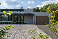 A modern office building in the heart of Toronto's business district. The white sign and brown wood doors make it easy to spot. Surrounded by vegetation, the building stands out against the clear blue sky.