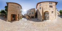A view of the charming streets and classic architecture in Tuscany, Italy. The sun shines down on the cobblestone alleyways and beautiful gardens. Explore the open spaces and picturesque buildings of this historic European town.