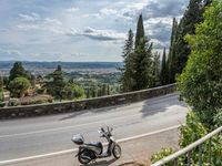 This is a panoramic view of the beautiful Tuscany landscape in Italy. The image captures a winding road surrounded by lush greenery and colorful flowers. Above, white clouds dot the blue sky, adding to the picturesque scenery. In the distance, the cityscape of Florence can be seen, with its iconic architecture and cultural landmarks. This photo represents the natural beauty of Tuscany, showcasing the harmonious blend of nature and urban elements. It is a perfect depiction of the charm and allure of Italy.