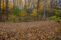 Two People Walking Along a Wooden Fence on a Wooded Trail in Toronto, Ontario