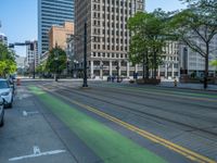 A modern office building in Salt Lake City, Utah. The city's business district embodies urban design with its architecture and urban surroundings. The clear sky casts a hard shadow on the road, creating a vibrant city life atmosphere.