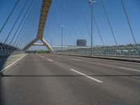 A modern bridge in the city of Zaragoza, Spain. The bridge stands against a clear sky, showcasing the city's urban design and modern architecture. Daytime in Zaragoza captures the essence of city life in Europe.
