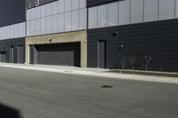 This stock photo features a street in Toronto, Canada, showcasing modern architecture. The black, gray, and silver buildings add an urban touch to the cityscape. In the foreground, there is a red fire hydrant in front of the buildings, adding a pop of color. The scene takes place during the day, with a clear sky overhead. The road, made of asphalt, is perfect for parking. The composite material and wood used in the buildings' facades create a contemporary and stylish look. The image captures the essence of urban design and the dynamic atmosphere of Toronto's suburban areas. This photo is an ideal depiction of a modern office building or warehouse in a bustling city setting.