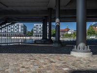 A view of Berlin's urban landscape featuring modern architecture under a clear sky. Shadows play on cobblestone streets creating a dynamic interplay of light. A quintessential day in Berlin, Germany, showcasing its unique city life.