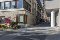 A modern residential building in Toronto, Canada. The sleek architecture and clear sky create a vibrant city atmosphere. The autumn foliage adds a touch of nature to the urban landscape.