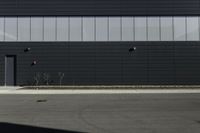 This image showcases a modern architectural design in Toronto, Canada. The urban landscape features a low-rise building with white siding and a brick wall, casting a hard shadow. The black street light adds contrast to the scene. The clear sky above complements the overall composition. This photo depicts the contemporary urban design found in Toronto's suburban areas. The combination of modern architecture and traditional elements, such as the brick wall, creates a visually appealing aesthetic. It highlights the blend of old and new in the city of Toronto.